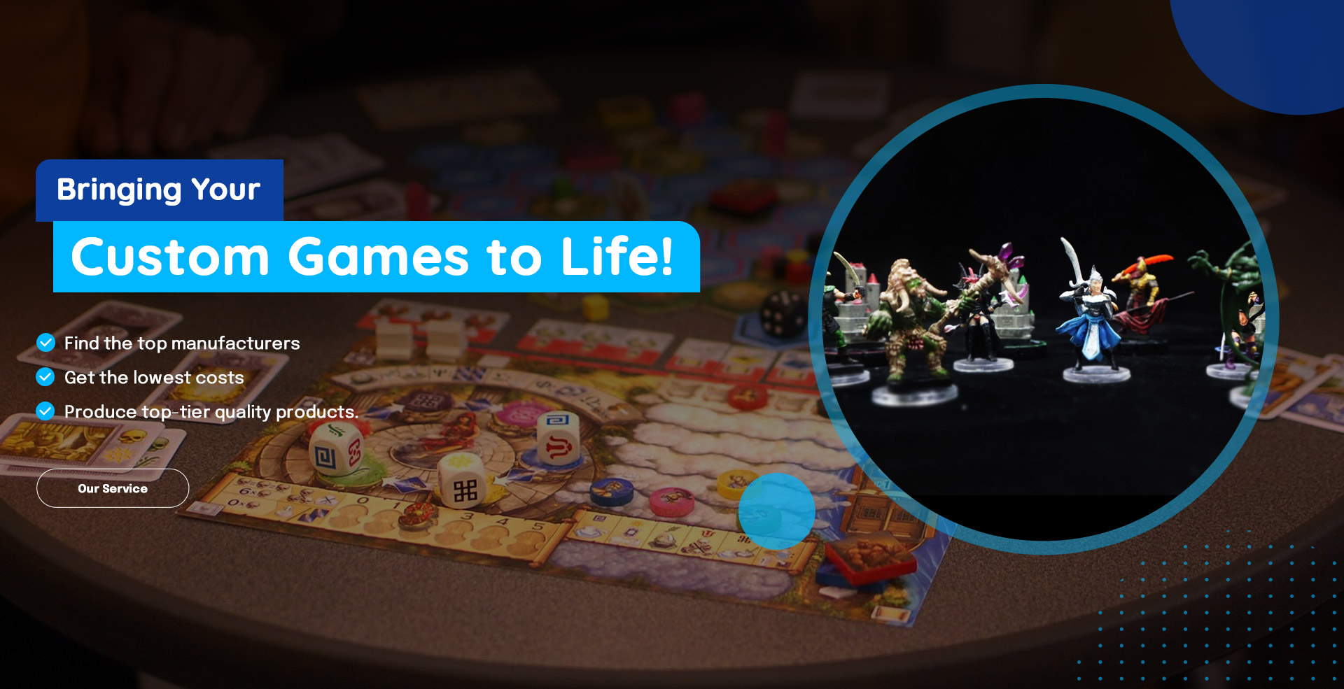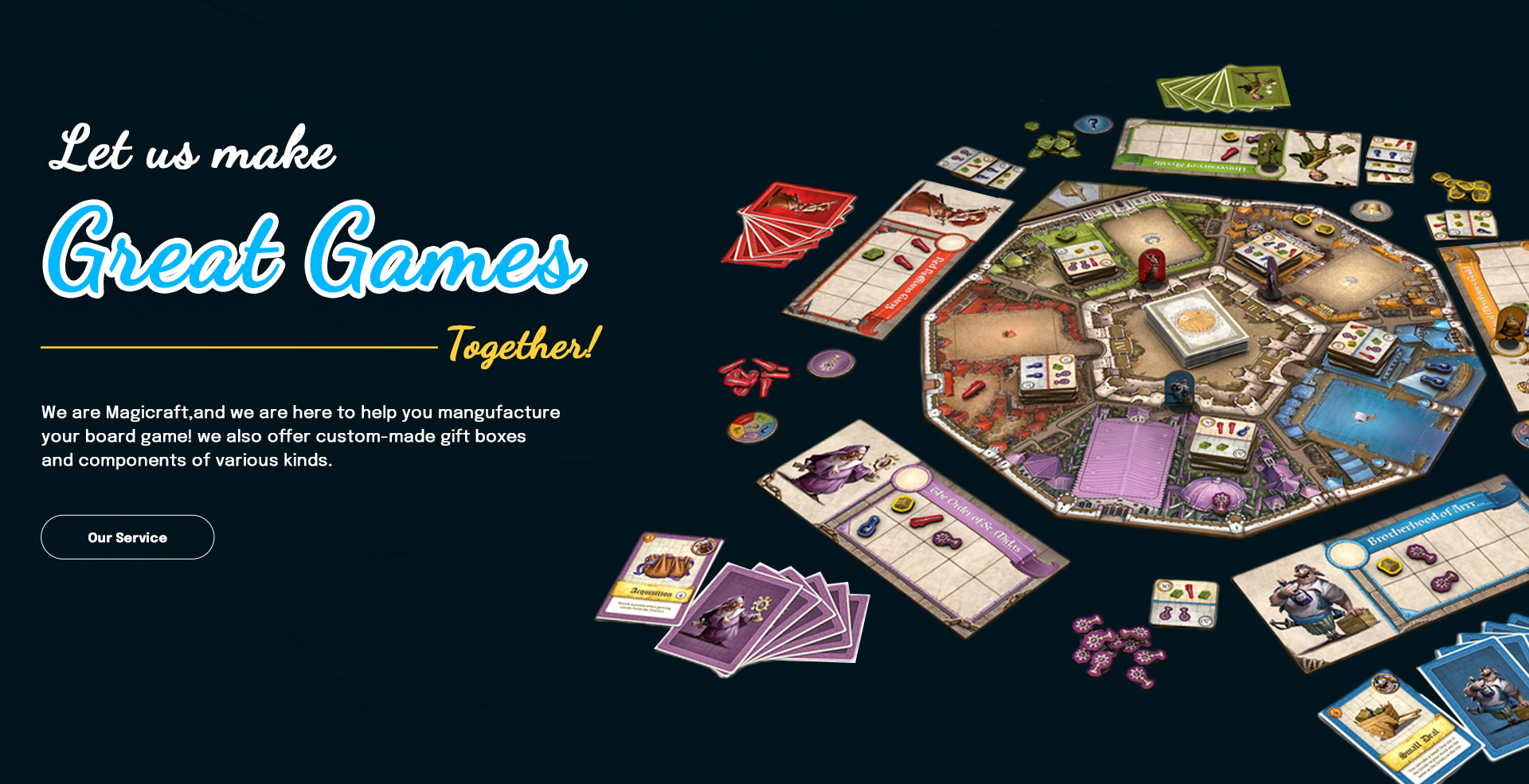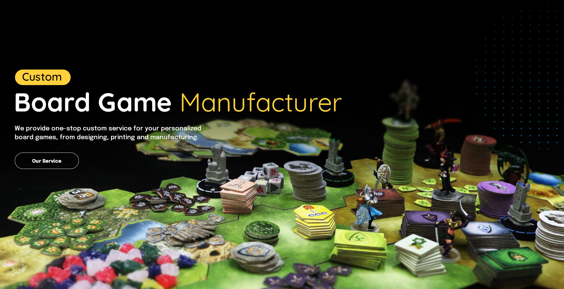 “ At HUACI Printing Board Games Factory, we are dedicated to helping you create your dream game. From game components to custom dice and miniatures, we can manufacture and deliver anything you can imagine. ”